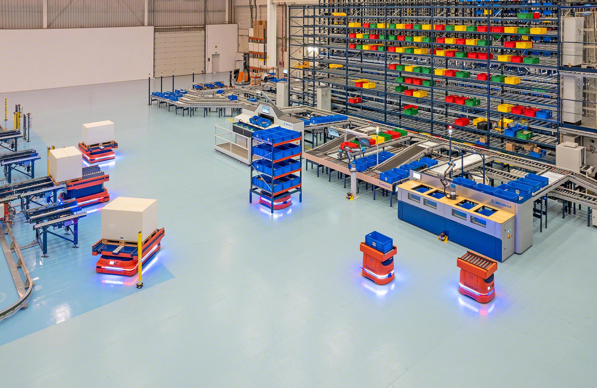 Os AMRs da Mecalux são dispositivos altamente versáteis que são facilmente integrados em qualquer tipo de armazém, pois não é necessário fazer alterações na infraestrutura existente. Os diferentes modelos da série formam um conjunto polivalente que abrange o manuseio de uma ampla variedade de cargas, desde caixas, bandejas e embalagens até estantes e paletes. Sua utilização contribui para dinamizar e flexibilizar o fluxo interno das mercadorias em inúmeras operações de intralogística, aumentando a produtividade e a eficiência do armazém.