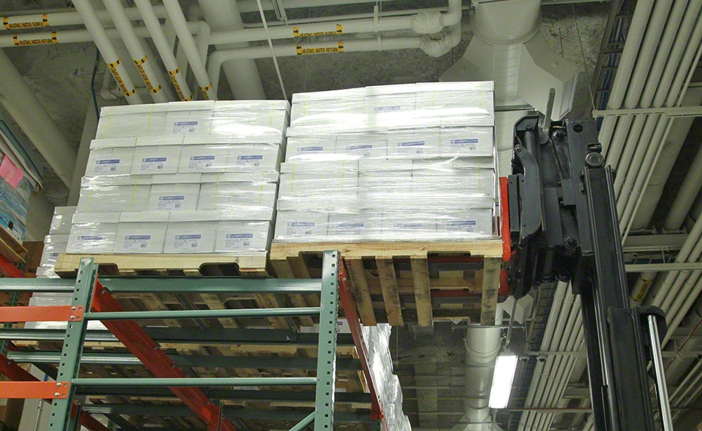 O problema da altura também era um impedimento para depositar um palete completo no nível superior, por isso os operadores tinham que fragmentá-lo. Tudo isso fazia com que os operadores perdessem tempo de trabalho, além de aumentar os custos do College of DuPage.