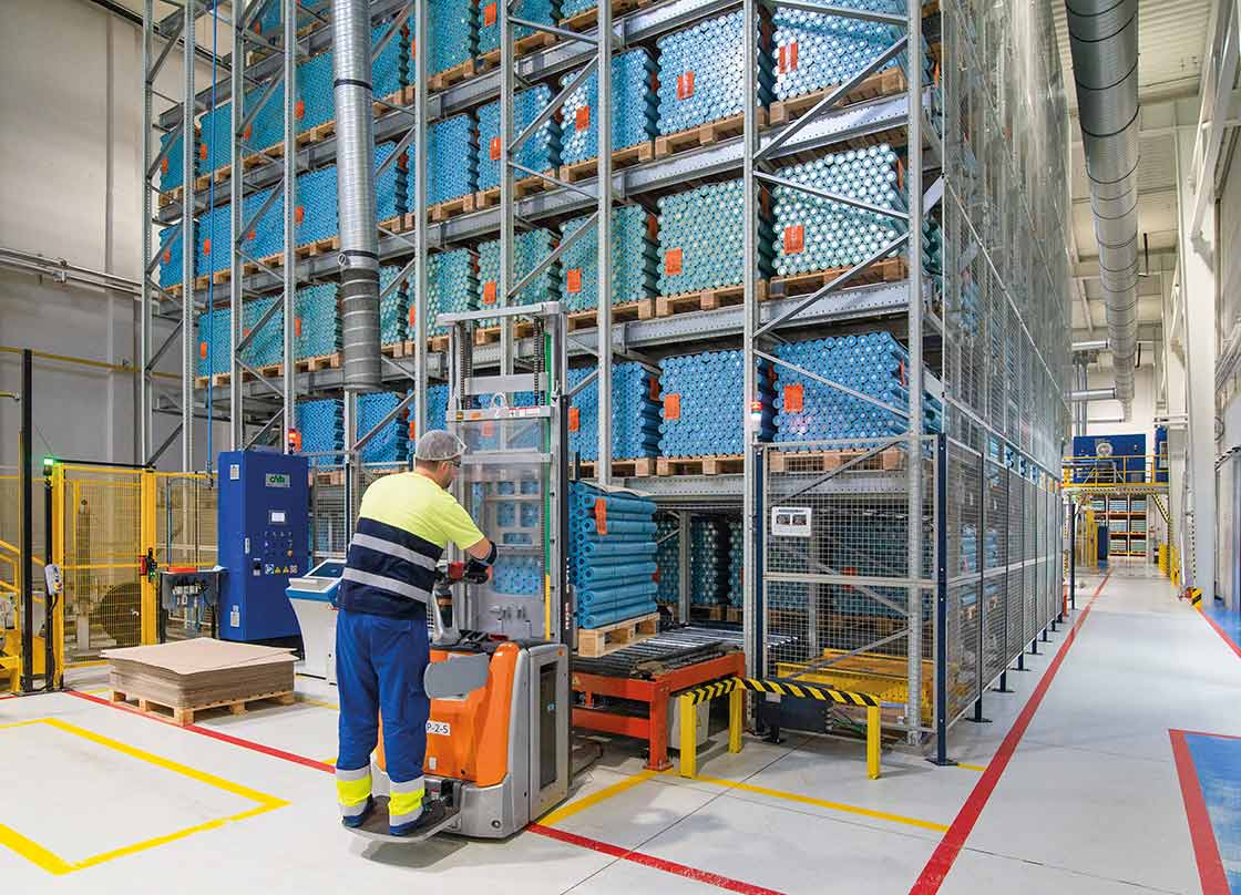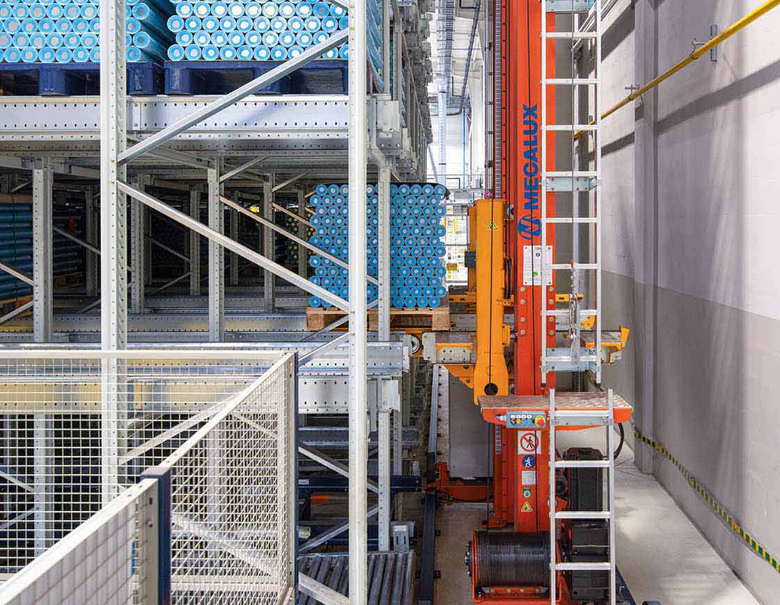 “A solução automática da Mecalux realiza movimentações de mercadorias de forma contínua e precisa, otimizando assim nossa logística. É um sistema que gerencia o estoque com autonomia, mantendo todos os produtos identificados e sob controle”, comenta a empresa. O sistema de armazenagem consiste em um transelevador que transporta os paletes até o canal correspondente e um carro motorizado que se desloca no interior até posicionar cada artigo no local designado.