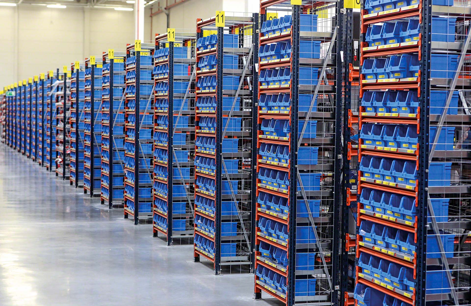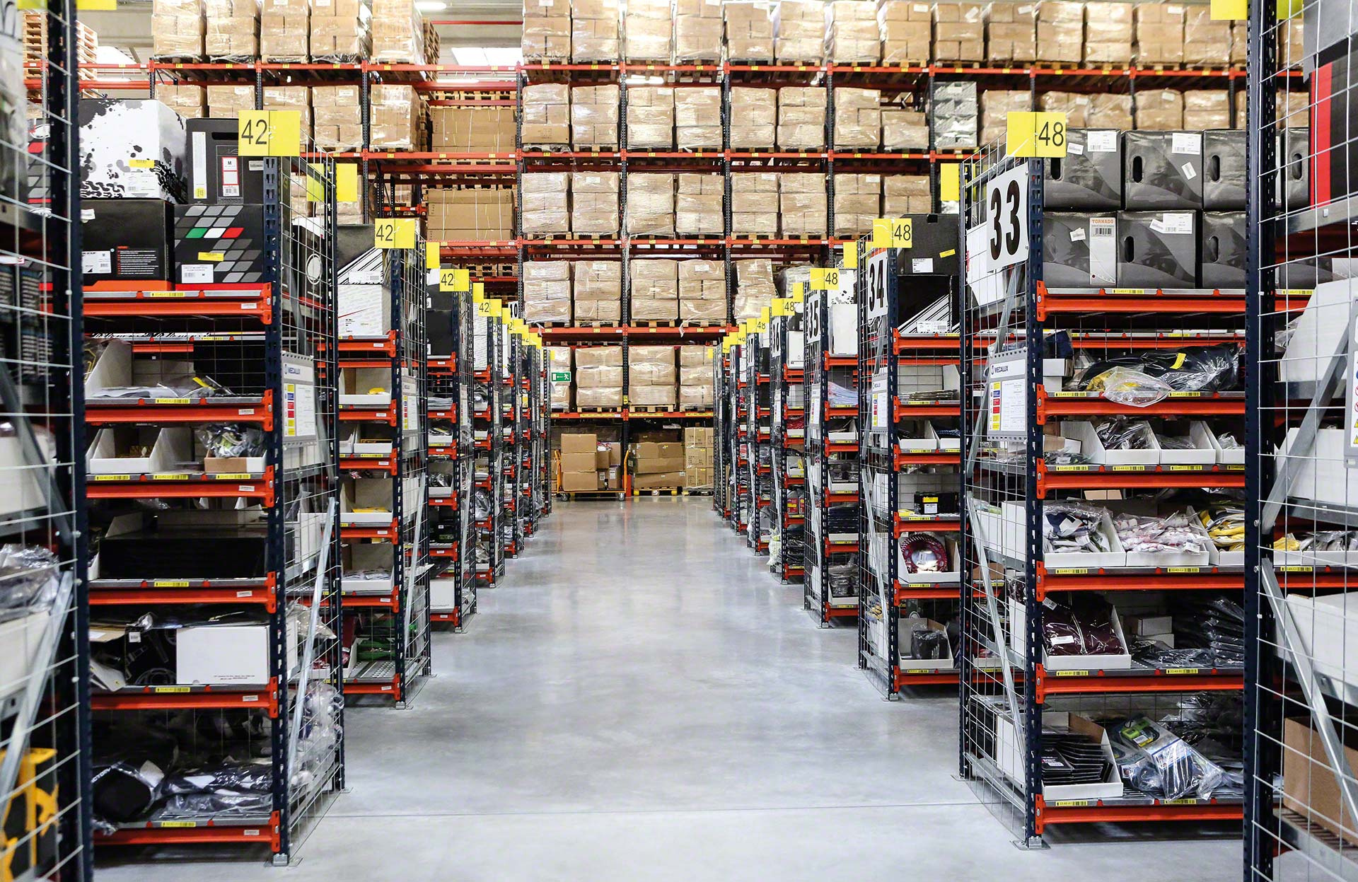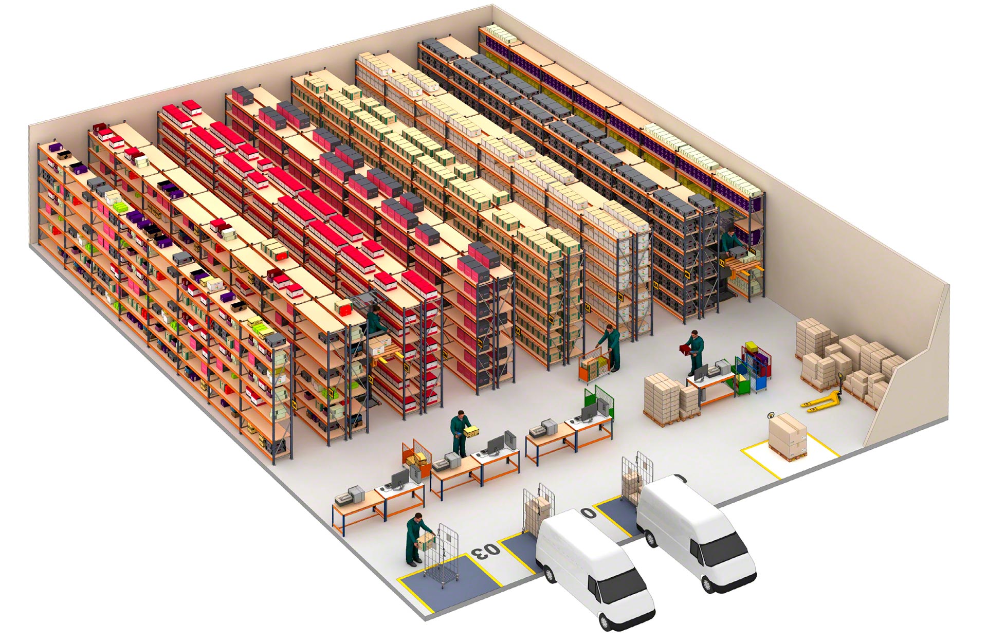 Mecalux M55Os mini porta paletes, utilizados normalmente em armazéns de picking, suportam pesos de mais de 1.000 kg por nível.