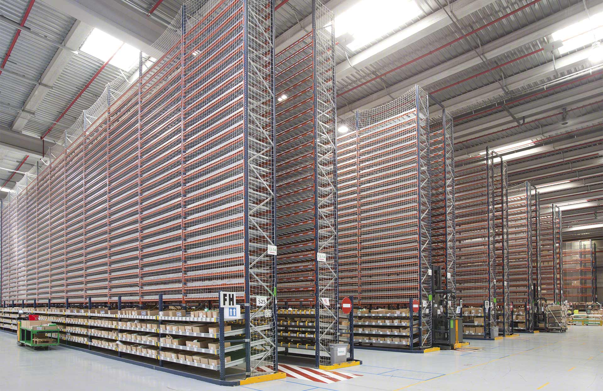 - Otimização da capacidade de armazenamento em altura: é possível projetar estruturas de até 12 m para trabalhar com máquinas selecionadores de pedidos e de até 20 m com acesso aos níveis altos com passarelas elevadas.