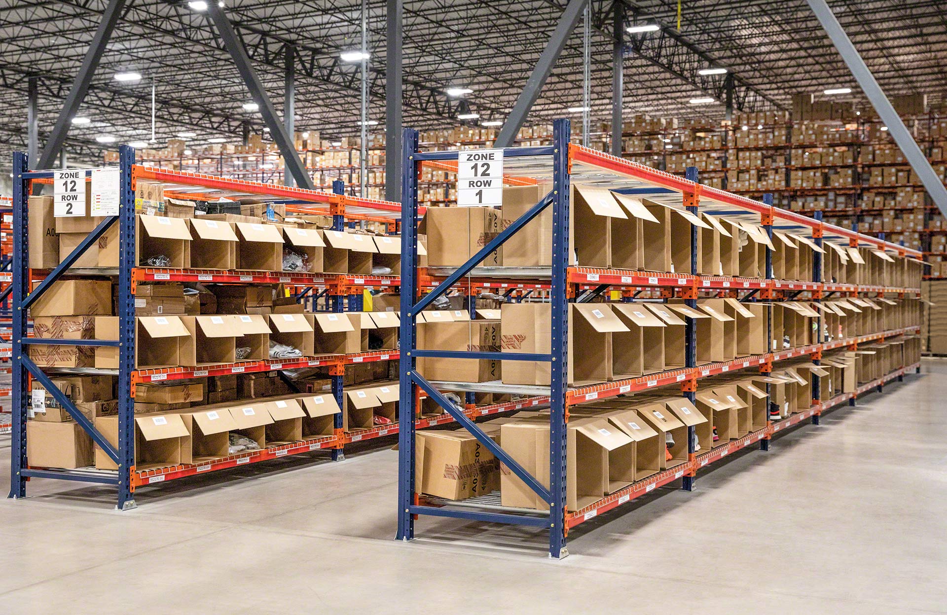 Mecalux M55Os mini porta paletes, utilizados normalmente em armazéns de picking, suportam pesos de mais de 1.000 kg por nível.